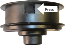 There are tabs on the side of the GrassGator head. Push one of the tabs towards the head to open it.