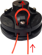 Push the old line towards the head until the center loop unhooks from the line holder and pull the line out (as directed by the arrows). Do the same for all 3 lines.