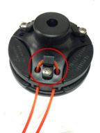 Pull the ends of the line to make it even on both sides. Make sure the center loop snaps into the line holder (circled in red).