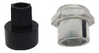 Take the bolt you found on step (2) and drop the shank of the bolt inside the plastic adapter. The head of the bolt should be completely inside the hex shaped hole on the adapter.